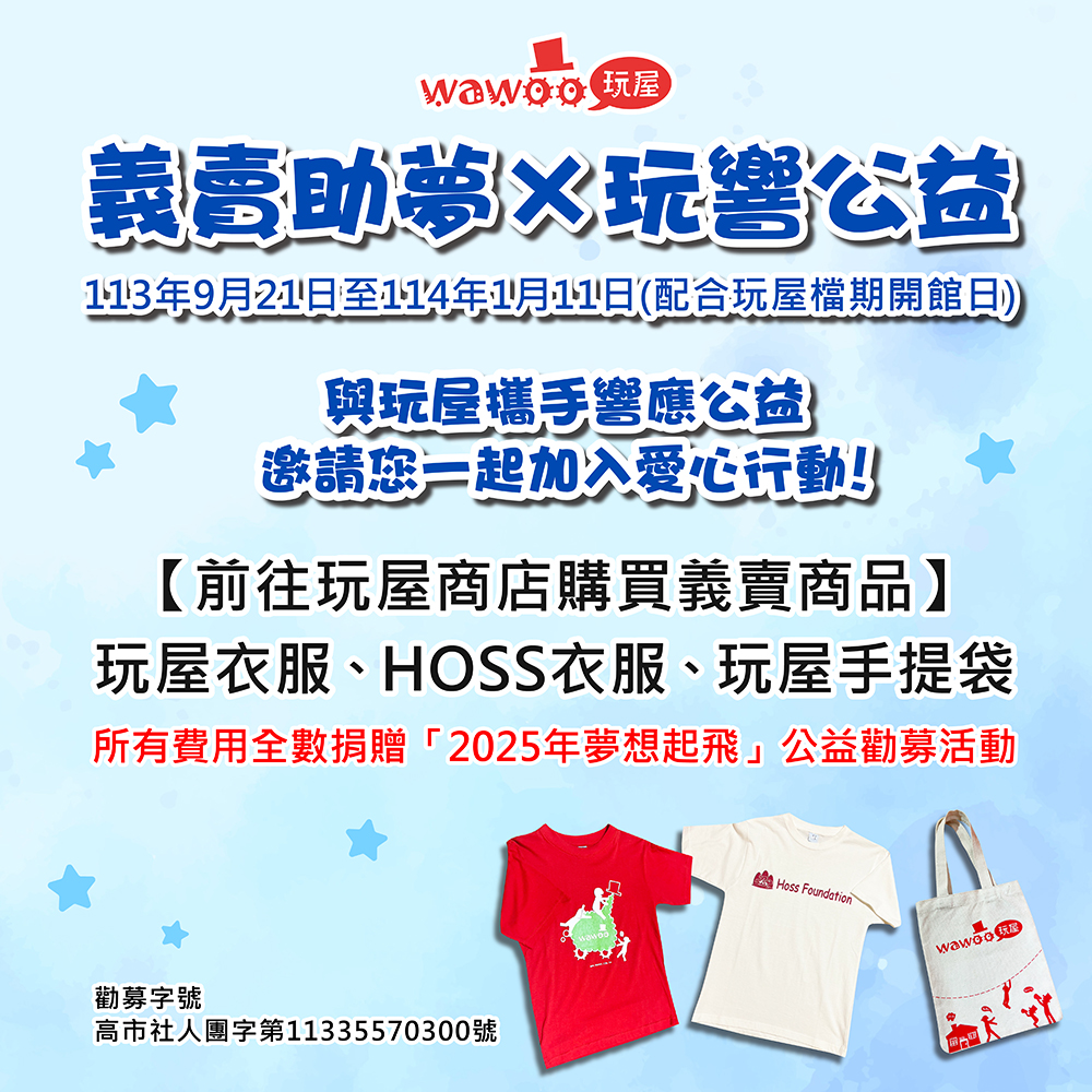 活動內容:前往玩屋商店購買義賣商品(限玩屋衣服、HOSS 衣服、玩屋手提袋)