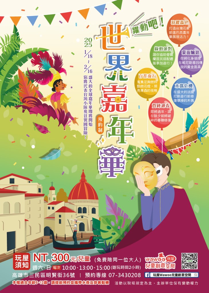 💡本次寒假闖關活動將帶小朋友們飛越三大洲探索各國獨特的嘉年華文化與習俗在這場全球嘉年華的冒險中你不僅能挑戰各式有趣的遊戲還能與隊友共同合作,培養團隊默契與精神💪